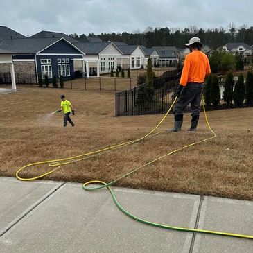 We service a variety of different communities here in Georgia for Pulte Group, Lennar, Meritage, Fischer Homes and Rocklyn Homes. That work consists of servicing single family homes, 55+ single family homes, townhome communities and a variety of common space available within those communities. Our main scope of business is chemical application consisting of post and pre emergent products plus fertilization.